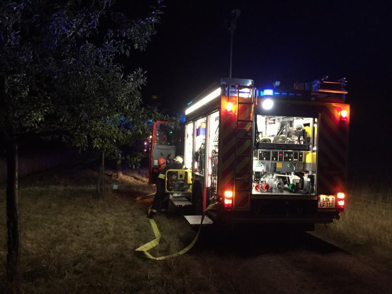 Im Gerätehaus angekommen, blieb nicht viel Zeit für andere Dinge, denn bereits kurz nach Mitternacht rückten die Kinder zu einer brennenden Gartenhütte in Fleisbach aus. Um das Feuer zu löschen, mussten die jungen Einsatzkräfte eine lange Wegstrecke zur Wasserversorgung legen. Außerdem galt es auch die Einsatzstelle gut auszuleuchten, um somit für alle Feuerwehrleute  gute Arbeitsbedingungen zu schaffen. Nachdem auch dieser Einsatz bewältigt wurde, konnte die Nachtruhe angetreten werden – auch wenn natürlich alle der nächsten Alarmierung entgegen fieberten.