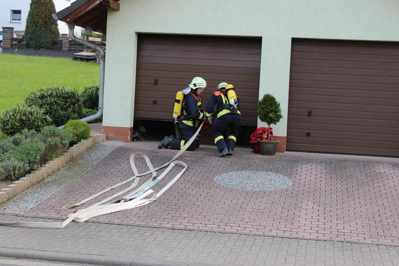 Dort erwartete die Kameraden immer wieder unterschiedliche Szenarien und "Gefahren", die es zu erkennen und abzuarbeiten galt. Dieses Spektrum des Szenarien erstrekte sich vom PKW-Brand in einer Garage bis zum Kellerbrand mit vermisster Person. So kam es, dass die Kameradinnen und Kameraden sich jedes mal auf eine neue Situation und einen neuen Ort einstellen mussten, so wie es bei einem Realeinsatz üblich ist. Auch die neuen Digitalfunkgeräte kamen zum Einsatz, um den richtigen Umgang und die Handhabung auch praktisch zu üben.