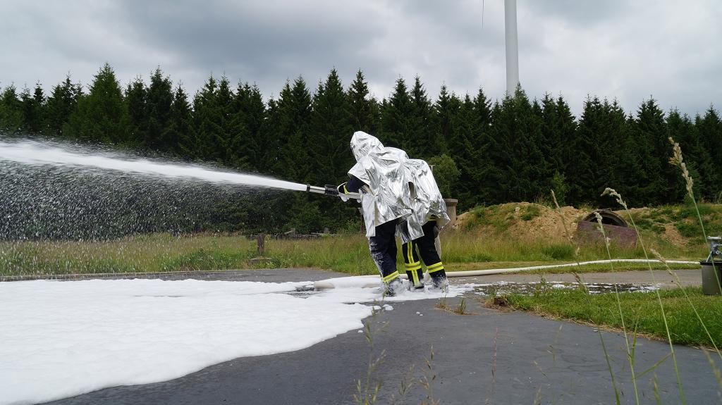 Als Highlight des Übungstages stand ein brennender Kesselwaggon auf dem Programm. Dazu bauten die Einsatzkräfte einen massiven Schaumeinsatz mit mehreren Rohren auf, um den Brand unter Kontrolle zu bekommen. Trotz aller Anstrengungen und Aufgaben hatten die Kameraden der beiden Wehren auch untereinander sehr viel Spaß bei der Arbeit und so konnte der Tag mit einem gemeinsamen Abschluss im Edinger Gerätehaus beendet werden