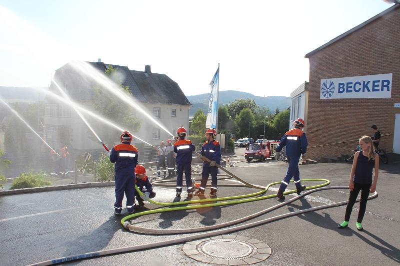 Die Jugendfeuerwehren aller Sinner Ortsteile üben seit April diesen Jahres in einem regelmäßigem Abständen von etwa 3 Monaten zusammen. Am vergangen Freitag war die Firma "Becker Antriebe" in Sinn das gemeinsame Übungsobjekt.