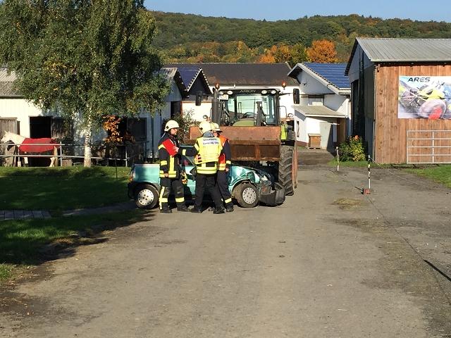 Am Samstag den 10. Oktober wurden die Einsatzkräfte zu dem Brand in der Reitanlage gerufen. Zügig waren die knapp 50 Einatzkräfte aus den Ortsteilen Sinn, Edingen und Fleisbach vor Ort. Nach der ersten Erkundung stellte sich heraus, dass es neben dem Brand in der Reithalle noch einen schweren Verkehrsunfall zwischen einem PKW und einem Traktor gab, bei dem die zwei Fahrzeuginsassen eingeklemmt wurden.