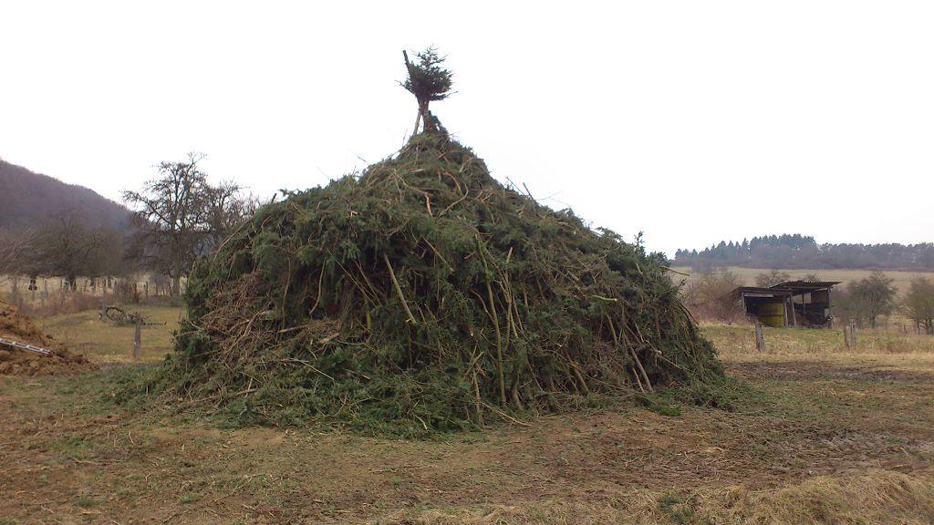 Das Brennmaterial dazu bestand überwiegend aus Grünschnitt und wurde im Laufe der Karwoche von unserem Aufbauteam aufgeschichtet.