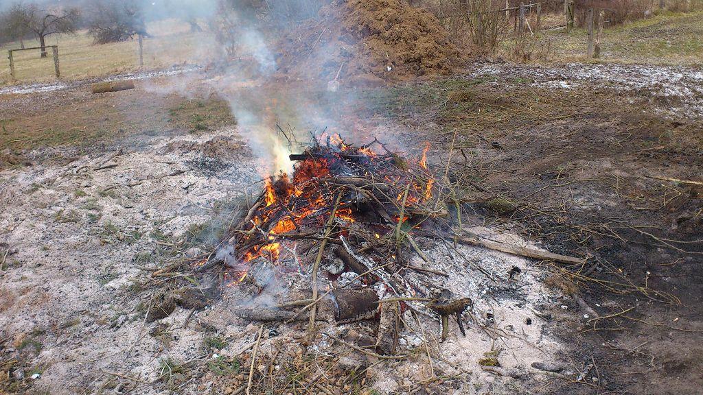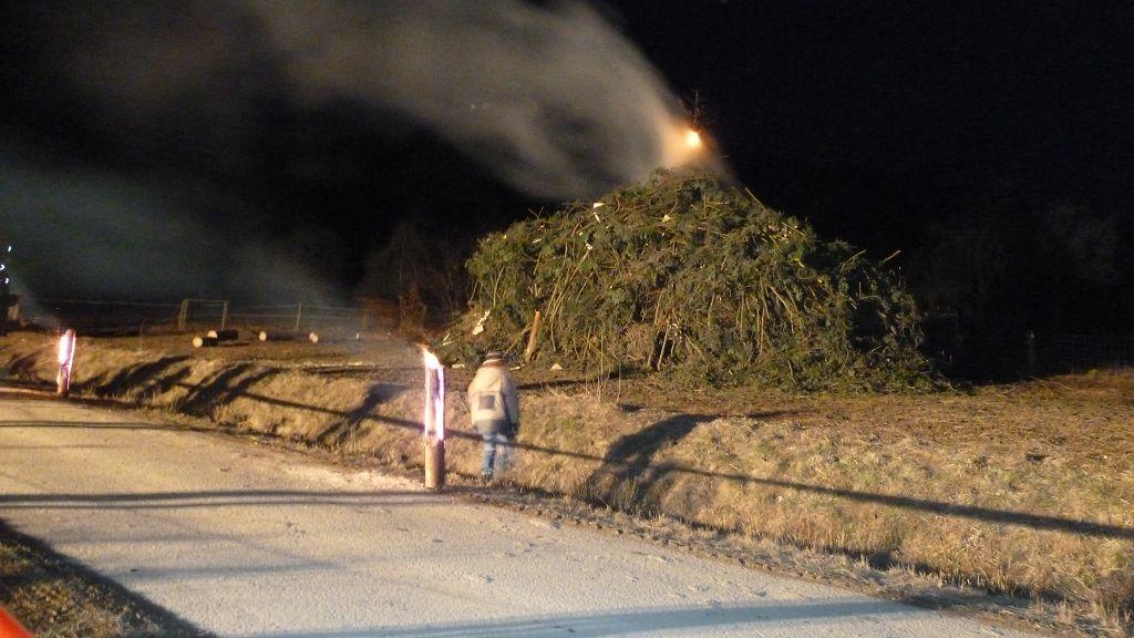 Da die Temperaturen für diese Jahreszeit ungewöhnlich niedrig waren und das Brennmaterial noch relativ feucht war, dauerte es einige Zeit, bis die ersten Flammen sichtbar wurden.