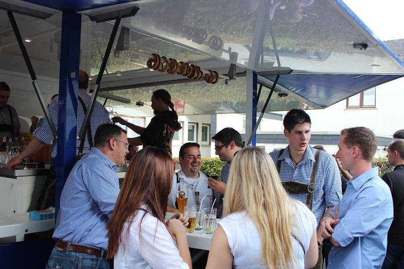 Wie schon im vergangenen Jahr war der ehemalige Solmser Hof in Edingen der Schauplatz für das Volksfest. Ab 15 Uhr wurden die Gäste mit einem kühl gezapften Bier und Sonnenschein von den Edinger Kameraden empfangen. Diese hatten schon den ganzen Morgen für das richtige Ambiente im Solmser Hof gesorgt und den Innenhof bayrisch dekoriert. Im Schatten der großen Kastanie ließen sich die Gäste das Bier und die Schäufelchen schmecken und man stimmte sogar bei dem ein oder anderen Liedchen mit an.