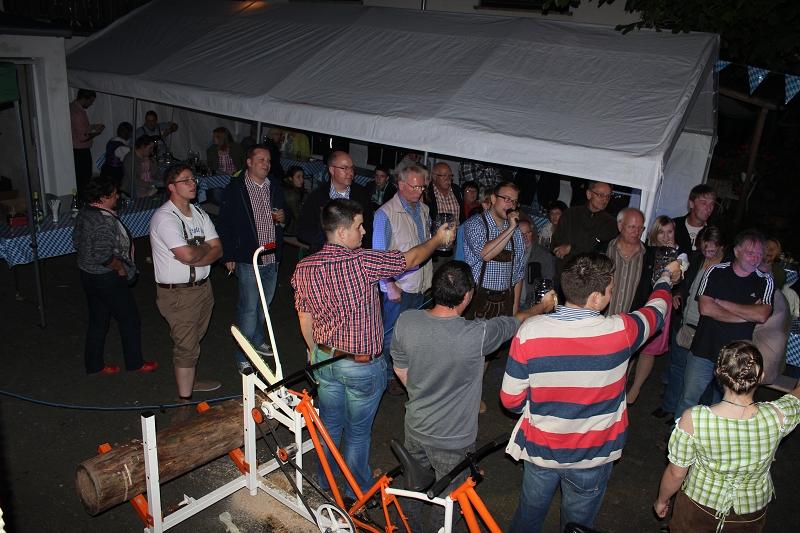 Wie im letzten Jahr gab es auch wieder einen bayrischen Dreikampf, bei denen sich sechs Mannschaften beweisen durften. Erfreulich dabei war, dass sich auch 2 weibliche Mannschaften zusamengefunden hatten. Sie mussten sich gegen die anderen Teams im Maßkrug stemmen, im Nageln und auf der "Fahrrad-Säge" beweisen. Gewonnen hat jedoch die Gastgeber, die sich bei 2 der 3 Disziplinen als Sieger präsentieren konnten