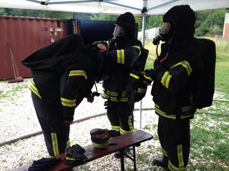 Um Trotzdem optimal vorbereitet und ausgebildet zu sein, versuchen die Wehrfühungen der Ortsteilwehren möglichst viele junge Atemschutzgeräteträger in sogenannten Heissausbildungsanlagen für den Ernstfall zu schulen.