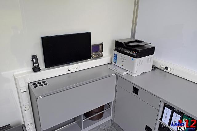 Der Besprechungsraum dient zur Darstellung der Lage an einer Einsatzstelle und zum Durchführen regelmäßiger Besprechung des Einsatzleiters. Hier können zudem, geschützt vor Witterung oder Lärm an der Einsatzstelle, wichtige Telefonate oder sonstige Gespräche "in Ruhe" geführt werden.